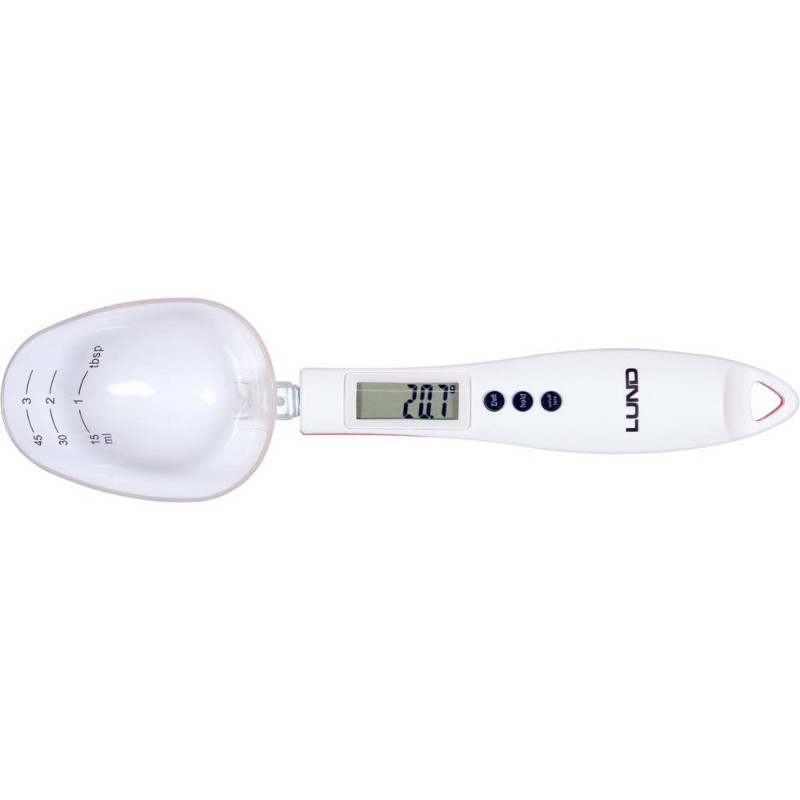 | Funkcija | Tarēšana; Cieto vielu mērīšana; Šķidrumu mērīšana; hold (keeping the digit on the display); adding up (max. 3000 g) |