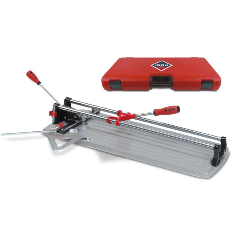 RUBI TS-MAX manuālie griezēji ir aprīkoti ar lielu pastiprinātu pamatni, lai profesionālim nodrošinātu lielāku komfortu un stabilitāti darba laikā. Griezēji ir aprīkoti ar divām hromētām tērauda vadotnēm, kas ir kalibrētas, un tām ir pretkorozijas apstrāde. Šī dubulto vadotņu sistēma nodrošina lietotājam labāku līnijas redzamību, tādējādi iegūstot augstu precizitāti katrā griezumā.