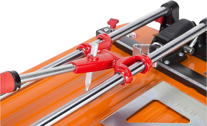 RUBI TS-MAX manuālie griezēji ir aprīkoti ar lielu pastiprinātu pamatni, lai profesionālim nodrošinātu lielāku komfortu un stabilitāti darba laikā. Griezēji ir aprīkoti ar divām hromētām tērauda vadotnēm, kas ir kalibrētas, un tām ir pretkorozijas apstrāde. Šī dubulto vadotņu sistēma nodrošina lietotājam labāku līnijas redzamību, tādējādi iegūstot augstu precizitāti katrā griezumā.