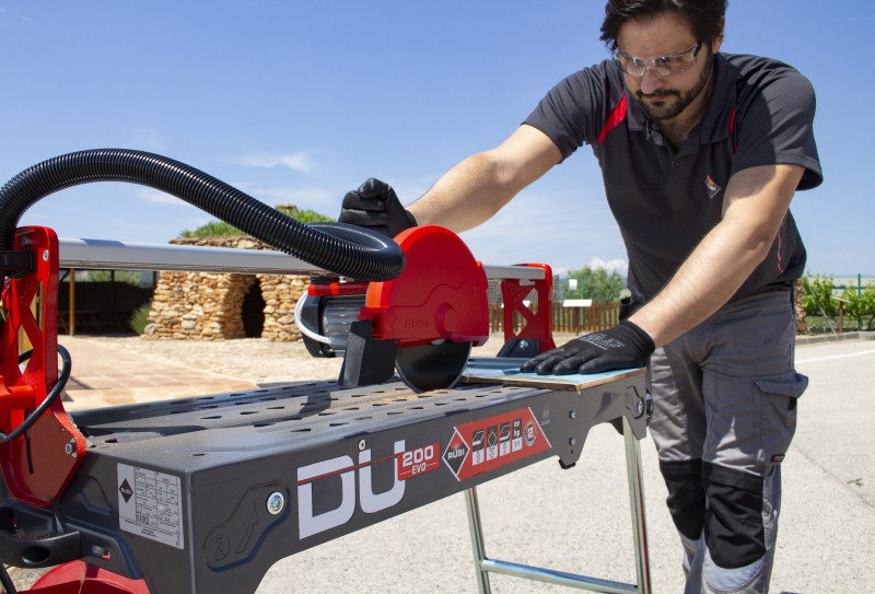 RUBI DU-EVO griezēji ir elektriski pārvietojami griezēji, kas paredzēti renovācijai un vieglam darbam. Tie ir lieliski piemēroti vispārējai keramikas flīžu griešanai. Elektriskie griezēji DU-EVO ir īpaši piemēroti PROFESIONĀLAI emaljētu flīžu un keramikas griešanai, kā arī porcelāna keramikas griešanai. RUBI DU-EVO elektriskie griezēji ir aprīkoti ar 1,1 ZS (0,8 kW) tiešās piedziņas motoru un termisko aizsargu.