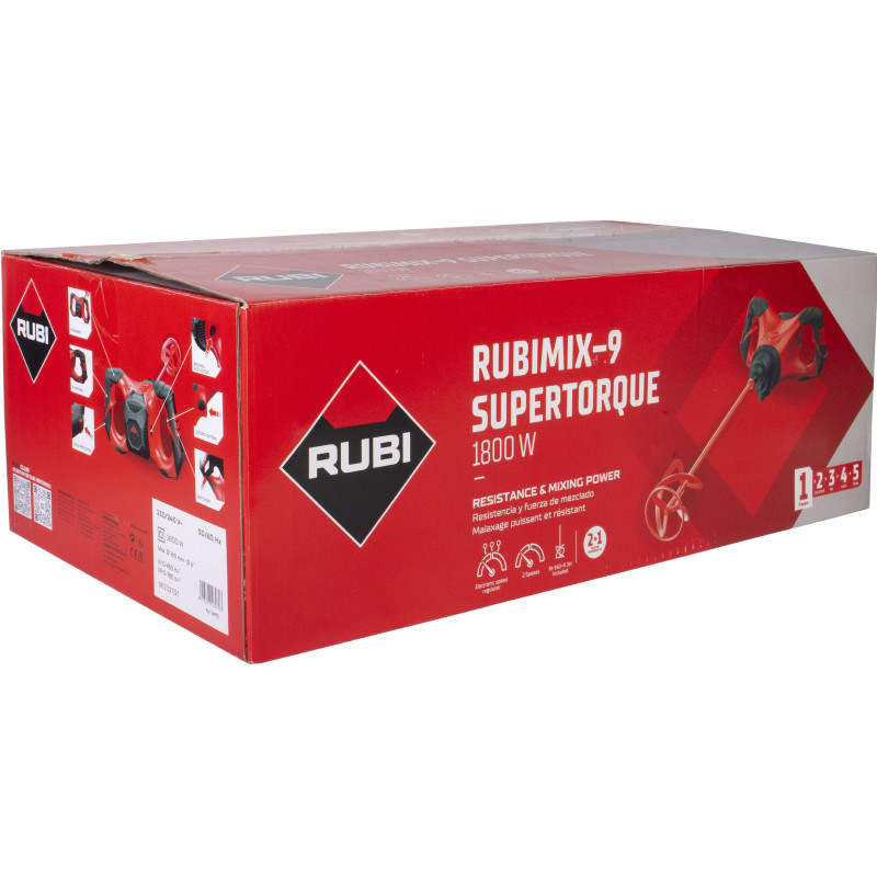 Pateicoties 1800W jaudai, RUBIMIX-9 SUPERTORQUE var uzstādīt līdz pat 160 mm diametra lāpstiņas, tādējādi sasniedzot maksimālo jaukšanas jaudu līdz 60 kg.