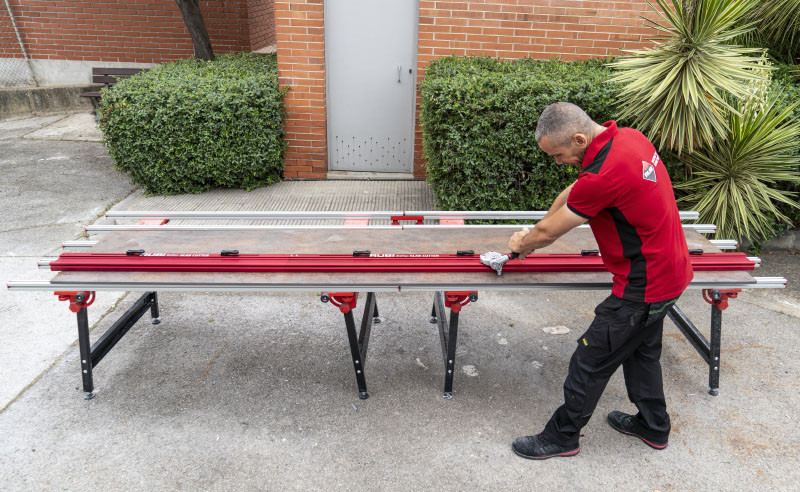 SLAB CUTTER manuālā griešanas sistēma ļauj precīzi griezt lielformāta porcelāna loksnes.