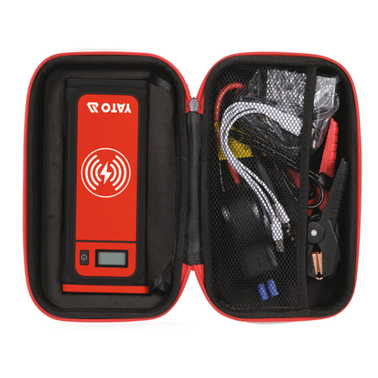 Портативный стартер и зарядное устройство YATO YT-83085 с емкостью 16000 мАч идеально подходит для экстренного запуска автомобилей, мотоциклов, квадроциклов, лодок с подвесными двигателями, садового оборудования и питания портативных устройств.