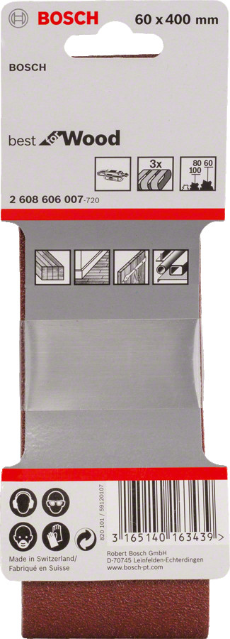 Slīplente kokam 60x400,K60/80/100, 3 gab., Lentes slīpmašīnām PRO X440 SLĪPLENTA, 2608606007, BOSCH