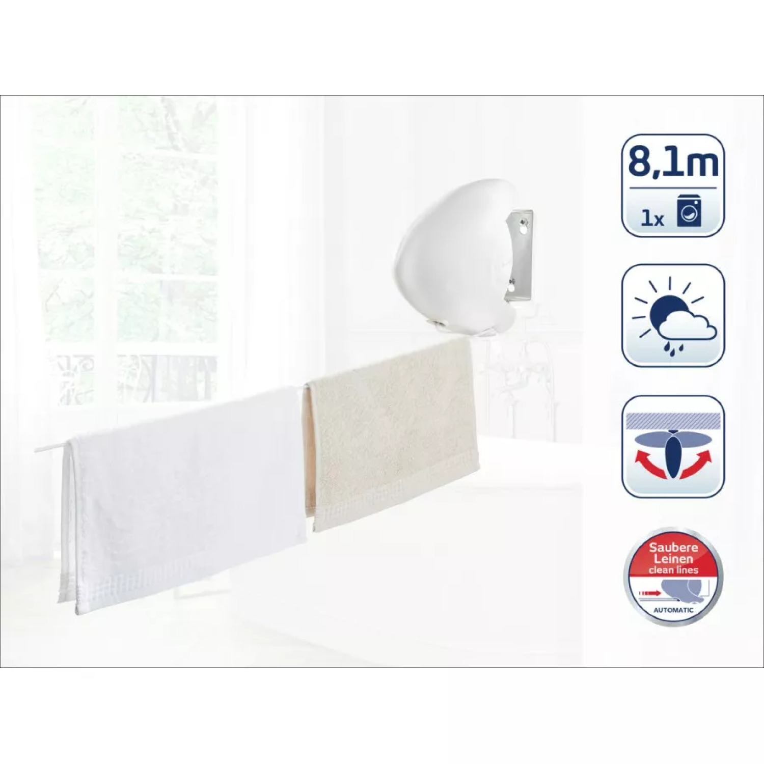 Компактная, практичная и удобная - это именно то, чем является автоматическая бельевая веревка Leifheit Rollfix Single 80 Longline. Настенная сушилка для белья позволяет сэкономить пространство в вашем доме.