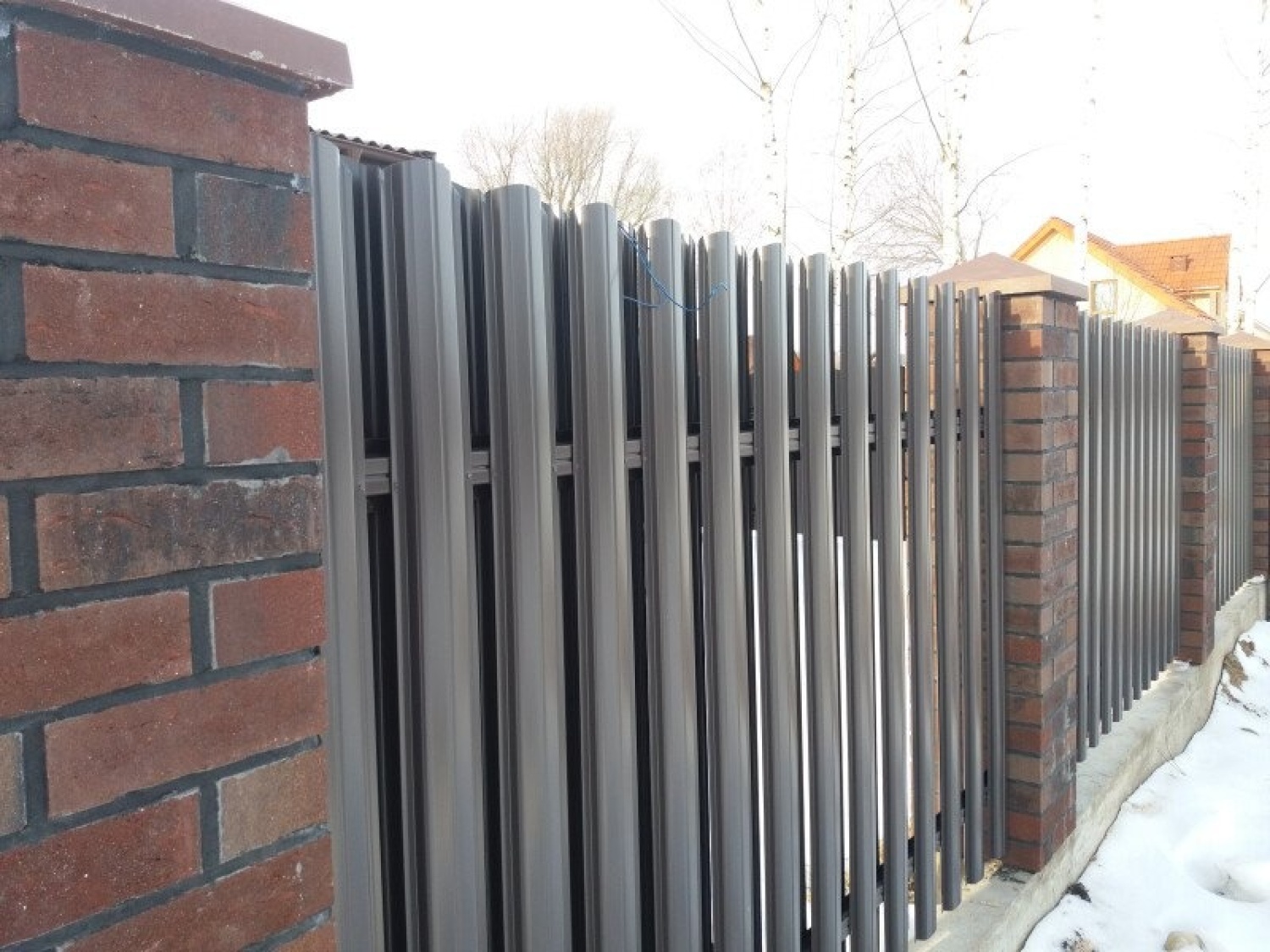 Расстояние между досками забора 2 см. Требуется 7 досок для забора на 1 м забора.