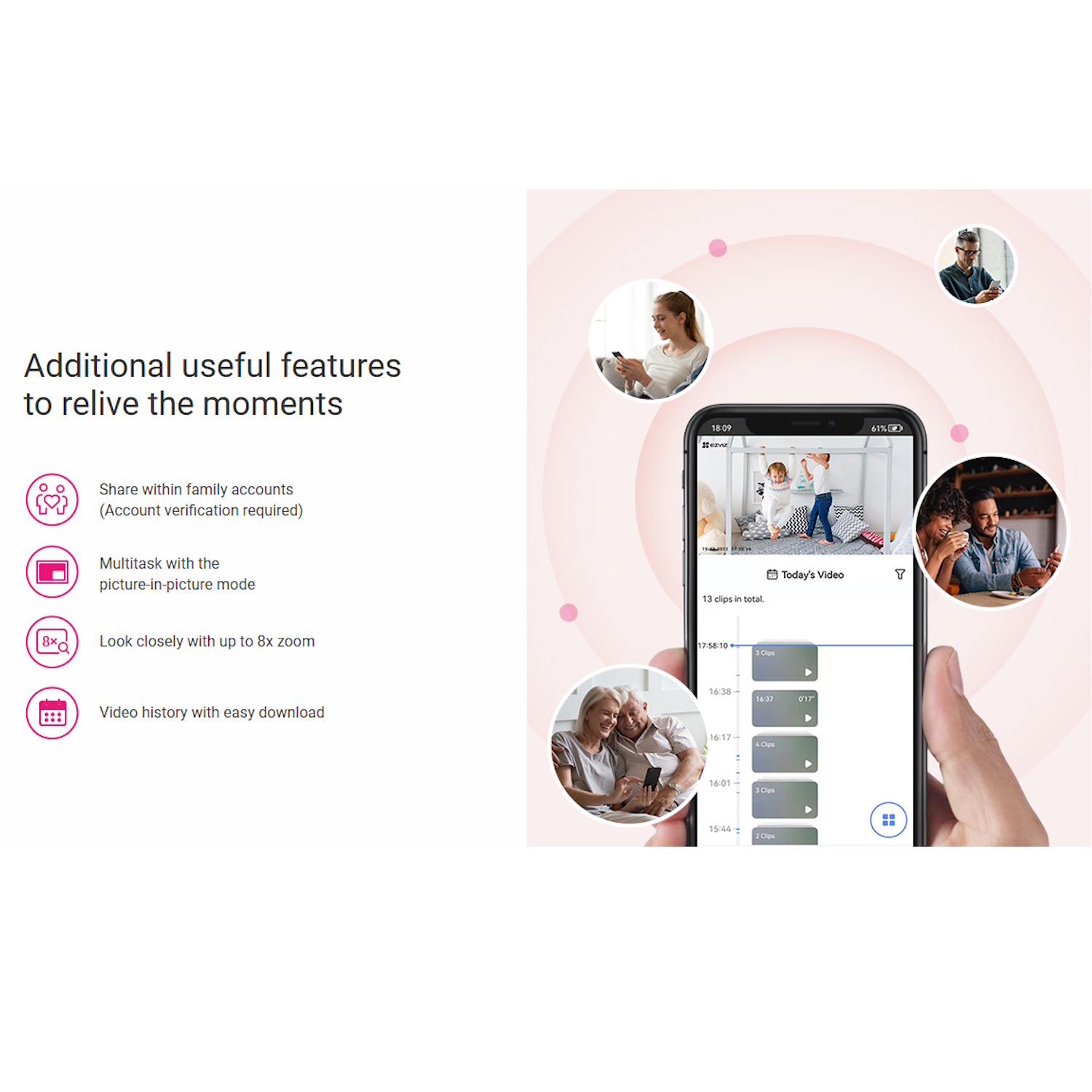 Выбирайте между локальным хранением с картой MicroSD или безопасным облачным хранилищем через EZVIZ CloudPlay, что гарантирует, что моменты вашего малыша будут надежно сохранены.
