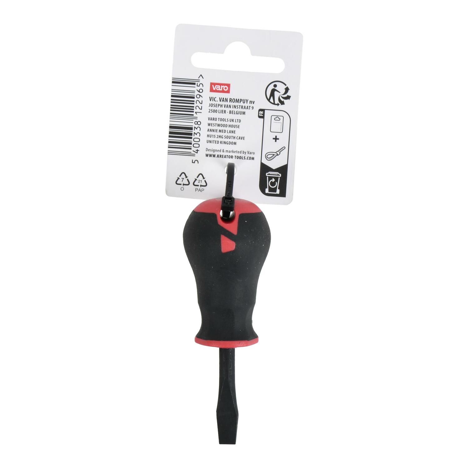 Этот короткий плоский отвертка (SL6.5) имеет длину вала 38 мм и изготовлен из высококачественной стали S2. Магнитный наконечник ускоряет процесс закручивания винтов. Мягкая противоскользящая ручка обеспечивает надежный захват, а ее округлая форма предлагает дополнительный захват и крутящий момент. Кроме того, в ручке имеется встроенное отверстие для подвешивания, что облегчает хранение.