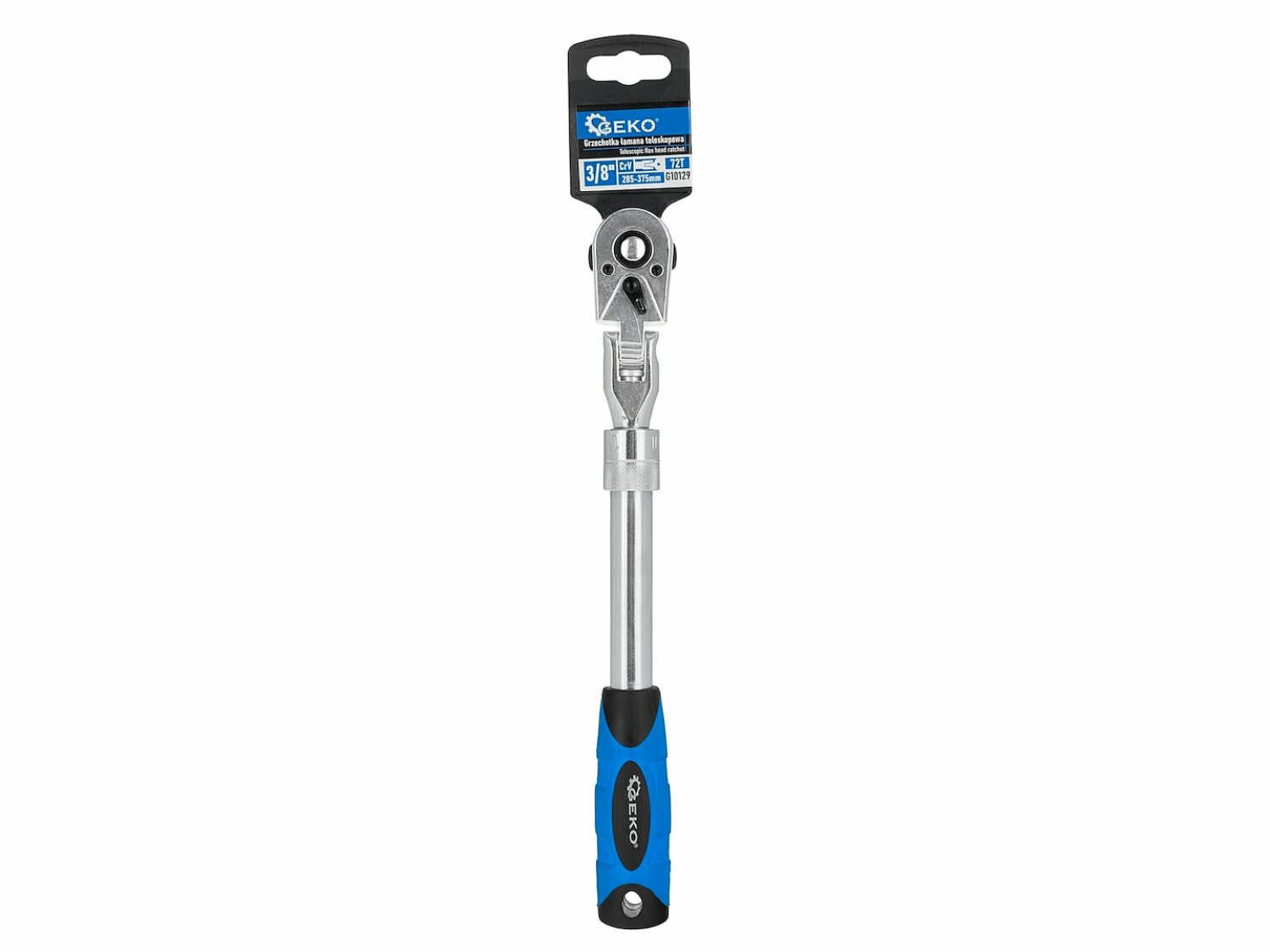 Телескопический гибкий трещоточный ключ с рукояткой 3/8" 285-375мм 72T CrV, GEKO, G10129