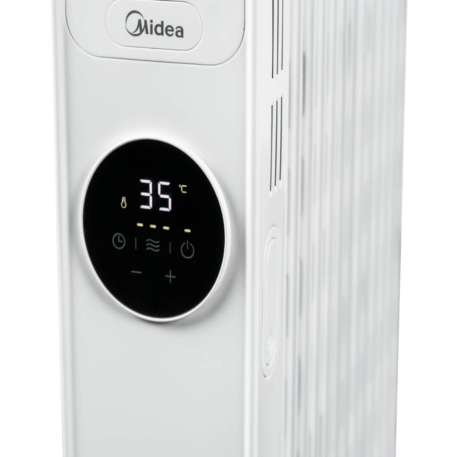 Midea NY2513-22MR — это высококачественный масляный радиатор мощностью 2500 Вт, тремя режимами нагрева и возможностью обогreit помещения площадью до примерно 35 м². Комбинация белого корпуса с тёмными элементами придаёт устройству современный вид, а масляный теплоноситель обеспечивает длительное сохранение тепла даже после выключения. Модель идеально подходит для жилых помещений, офисов или дополнительного отопления, когда важны комфорт, бесшумная работа и надёжность.