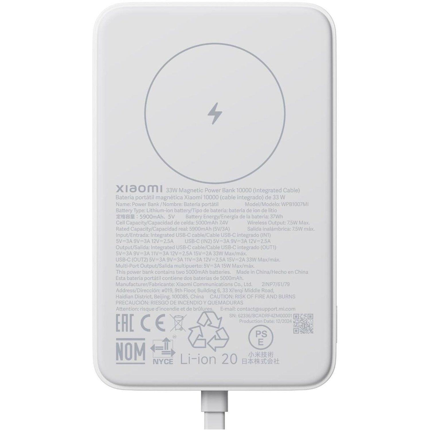 Xiaomi BHR9822GL это компактный и мощный беспроводной внешний аккумулятор ёмкостью 5900 mAh который сочетает высокую мобильность с современными технологиями быстрой зарядки. Аккумулятор обеспечивает до 33W беспроводной мощности а также полный набор проводных интерфейсов USB-C и USB 24 pin позволяя заряжать сразу несколько устройств одновременно. Он подходит для интенсивного ежедневного использования путешествий работы отдыха и любых ситуаций когда необходимо быстро и безопасно восстановить заряд мобильных устройств без доступа к сети питания. Элегантный белый корпус и тонкая форма делают эту модель универсальной для профессиональной среды и повседневного нош̌āšanas.