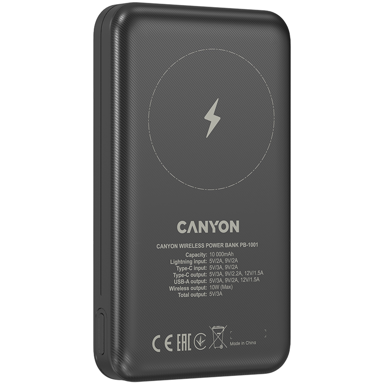 CANYON PB-1001 — универсальный и надёжный источник энергии в любой ситуации: в дороге, на работе или вне дома. Он поддерживает и проводную, и беспроводную зарядку, обеспечивая удобство при любых условиях. Благодаря большой емкости и защитным технологиям этот powerbank — практичный ежедневный аксессуар для тех, кто ценит стабильность и свободу в использовании гаджетов.