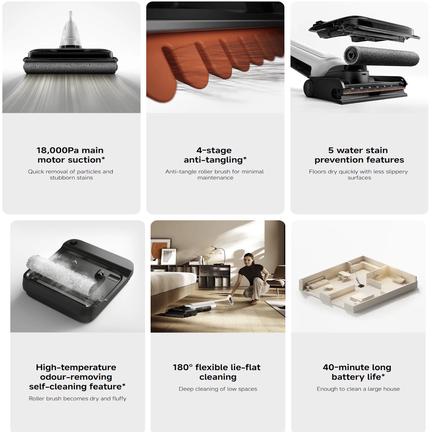 Xiaomi Truclean W30 Pro — это беспроводной моющий пылесос, который объединяет влажную и сухую уборку в одном мощном устройстве. С мощностью всасывания до 18 000 Па, аккумулятором 21,6 В и временем работы до 40 минут он обеспечивает глубокую, гигиеничную и быструю очистку полов без компромиссов. Создан для современного дома, где важны мощность и комфорт.