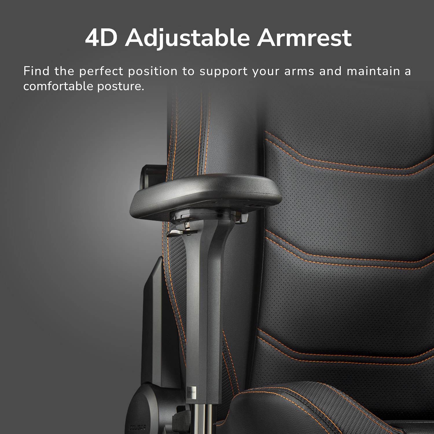 • 4D-регулируемые подлокотники → индивидуальная поддержка рук и запястий