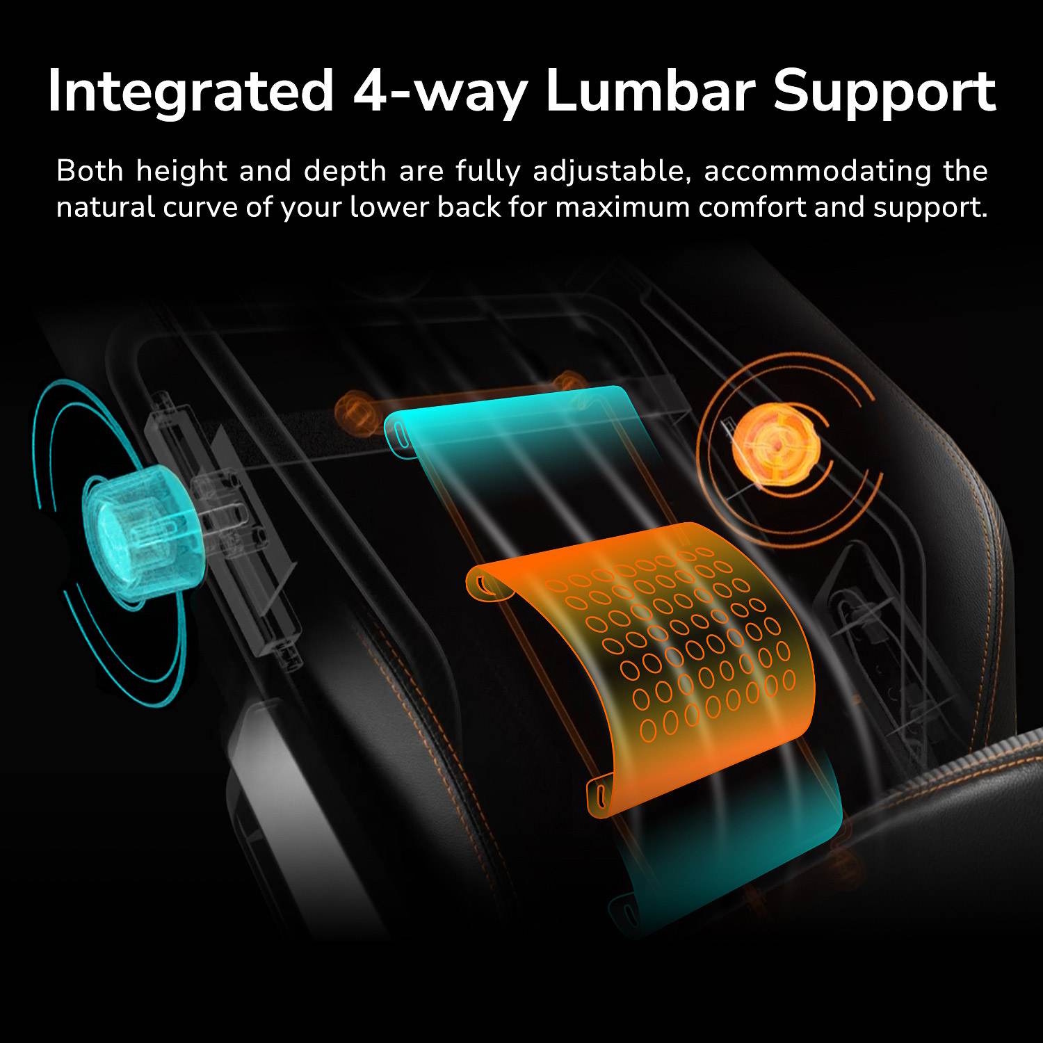 • 4-сторонняя регулировка поясничной поддержки → точная настройка поддержки нижней части спины
