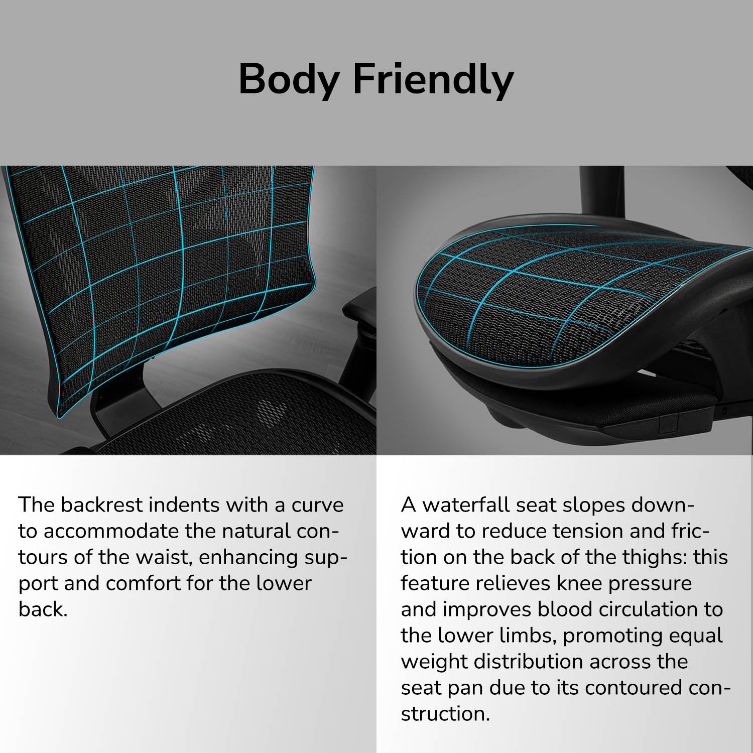 Эргономичный дизайн для естественной и правильной посадки при длительных сессиях