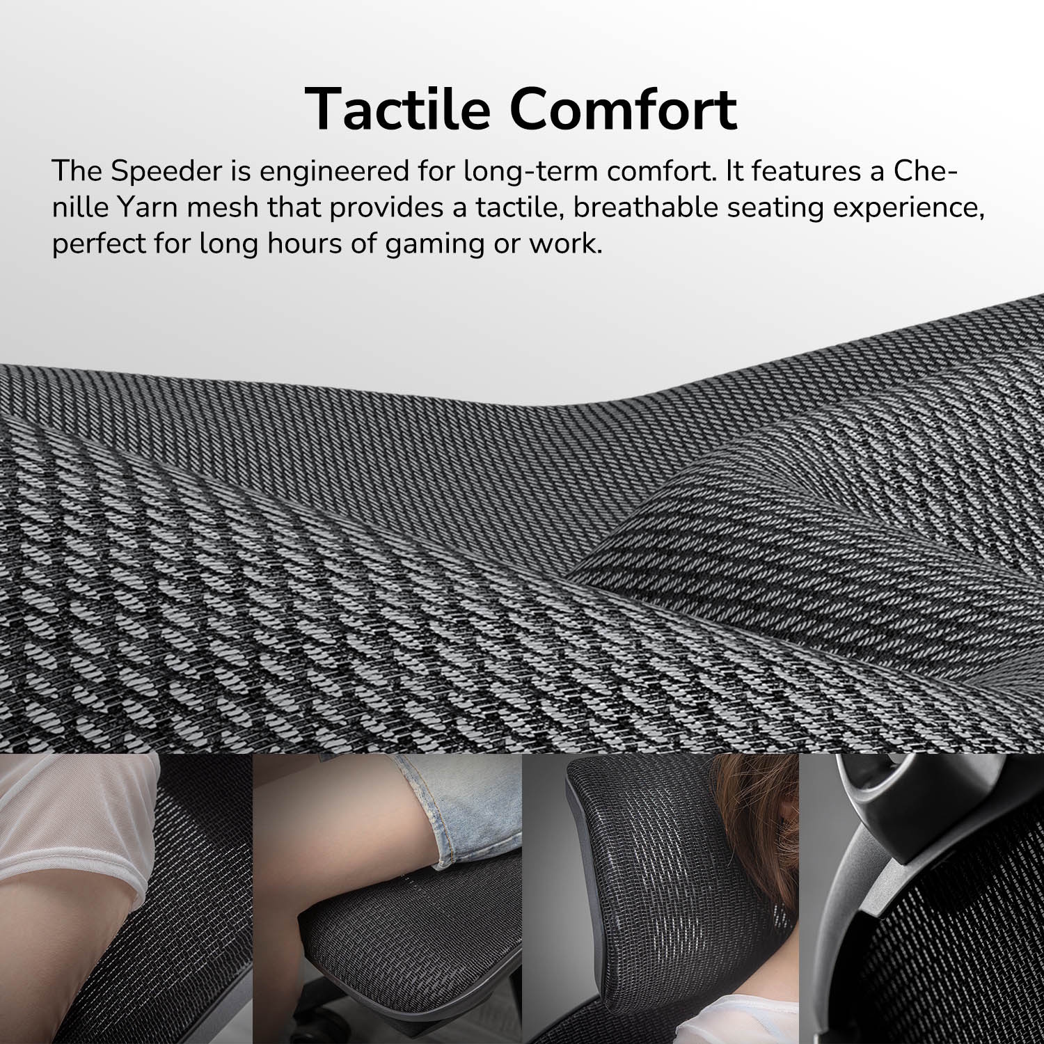 COUGAR Speeder — отличный выбор для пользователей, которые ценят вентиляцию, эргономику и универсальный комфорт. Сетчатые материалы обеспечивают ощущение свежести даже при длительном использовании, а 3D-подлокотники и выдвижная подставка для ног позволяют адаптировать кресло как для работы, так и для отдыха.