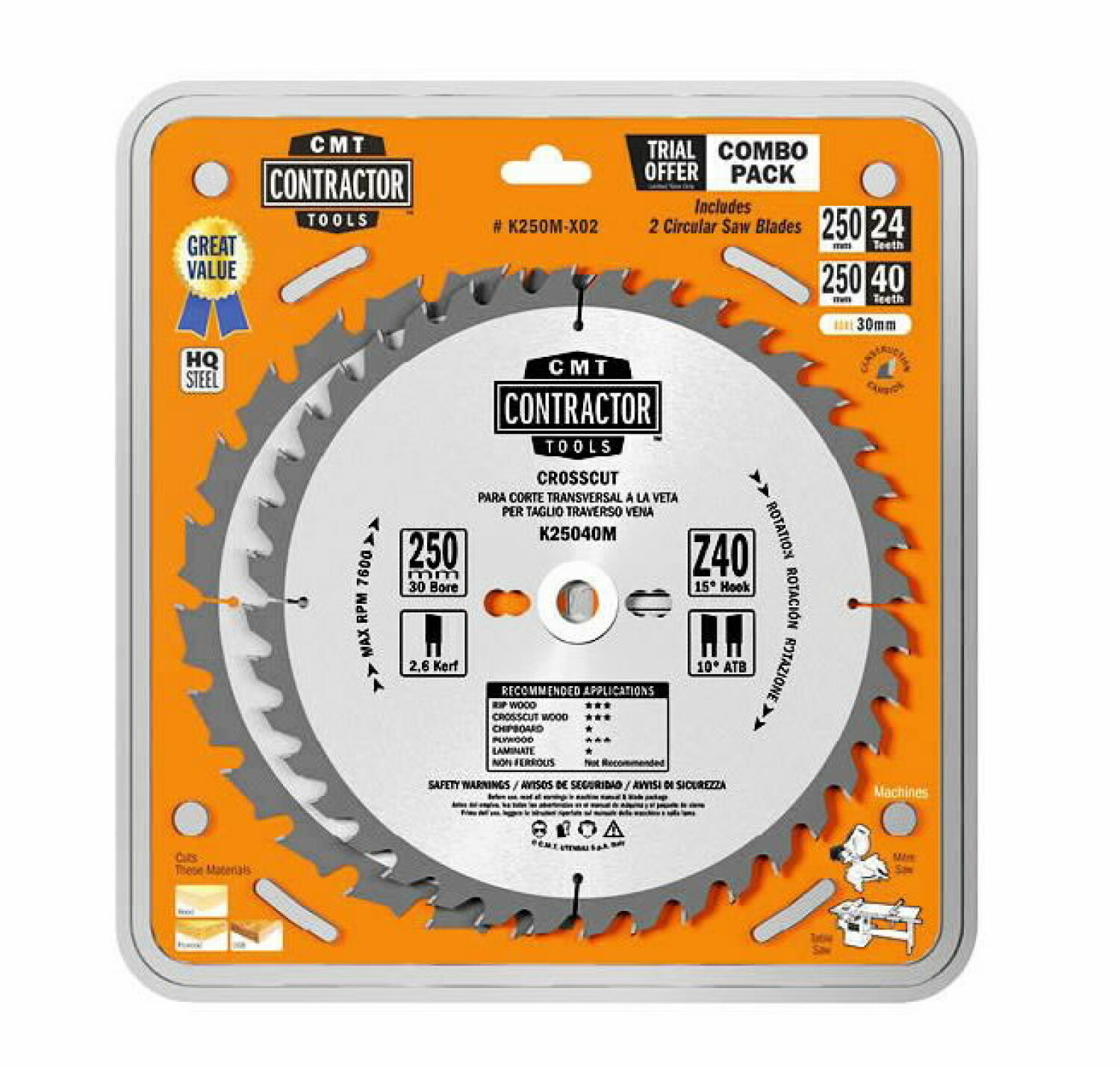 Набор пилок CMT K216M-X03 состоит из трех пильных дисков, предназначенных для работы с деревом, фанерой и ОСБ панелями.