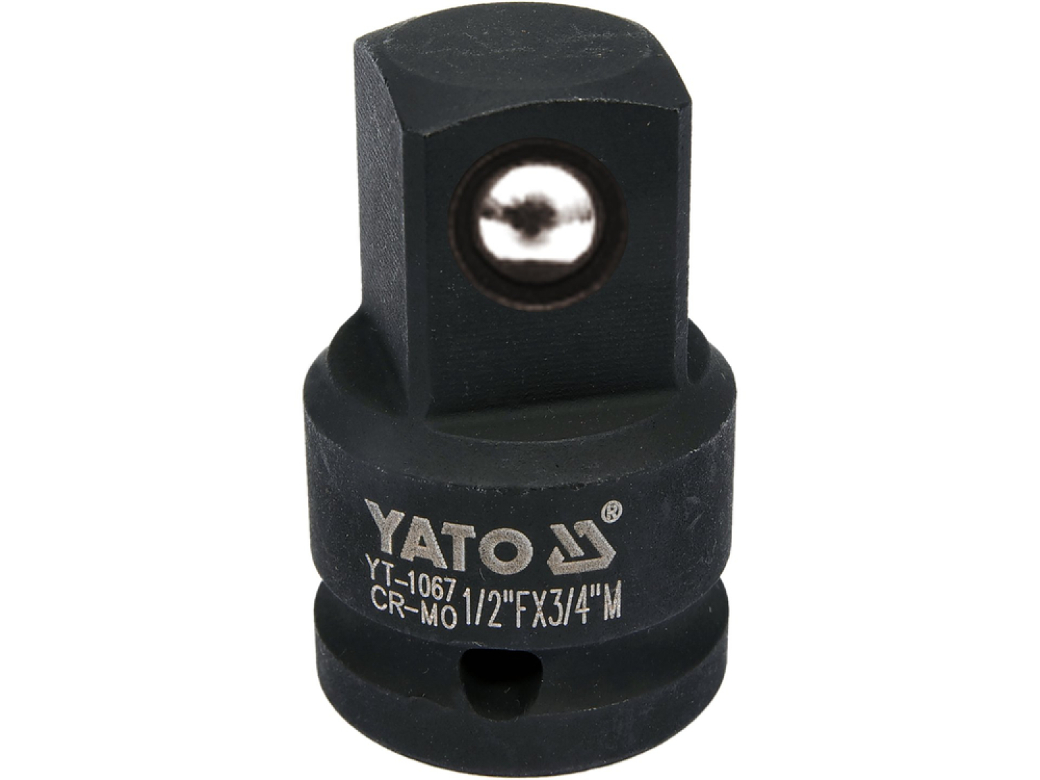 Переходник ударный YATO YT-1067 предназначен для соединения инструментов с разными размерами насадок. Он позволяет эффективно использовать оборудование с размерами 1/2" и 3/4", обеспечивая необходимые переходы между ними.