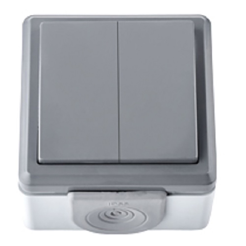 Slēdzis PRALESKA v/a, 2 taustiņi, IP55, pelēks BYLECTRICA