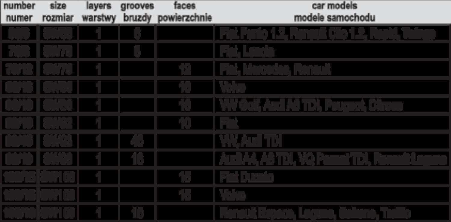 | Размер | 66/6F; 76/8F; 76/12F; 86/16F; 86/18F; 92/10F; 93/45F; 96/18F; 106/15F; 108/15F; 108/18F |