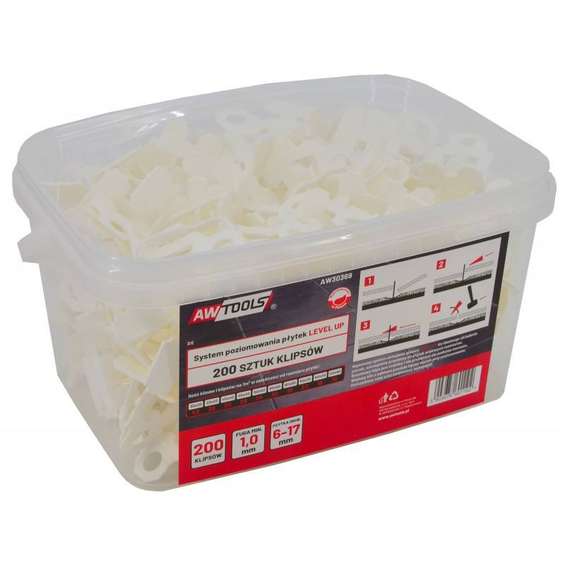 Flīžu uzstādīšans sistēma LEVEL UP 1mm, 6-17mm, 200gab.; AW30369 AWTOOLS