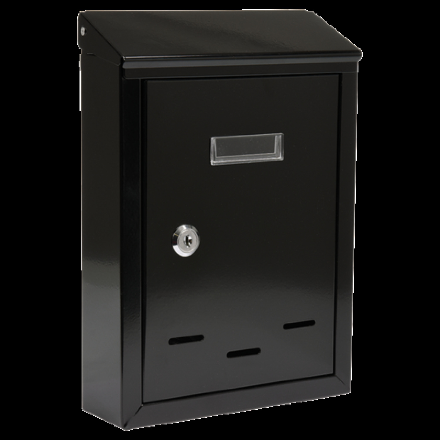Коробка для писем размером 285x200x60 мм изготовлена из стальной листы толщиной 0,6 мм с антикоррозийным гальванизированным покрытием графитового цвета. На верхней части ящика есть отверстие для писем с защитной крышкой. Фронтальная панель выполнена из пластика и предназначена для установки идентификационной таблички с адресом или фамилией. Дверца запирается на замок. В комплект входят 2 ключа. На задней стенке имеются монтажные отверстия. Н净ный вес 0,88 кг.